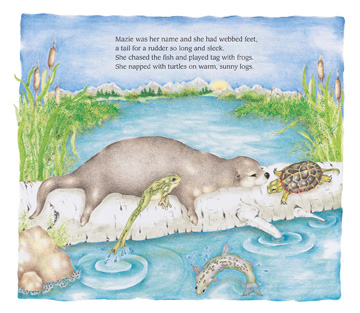 Once Upon a Rainbow tells the story of a curious, young river otter floating happily on her back on a clear mountain stream. Her name is Mazie, and there’s no place she would rather be than at home in the beaver pond with her family and friends.